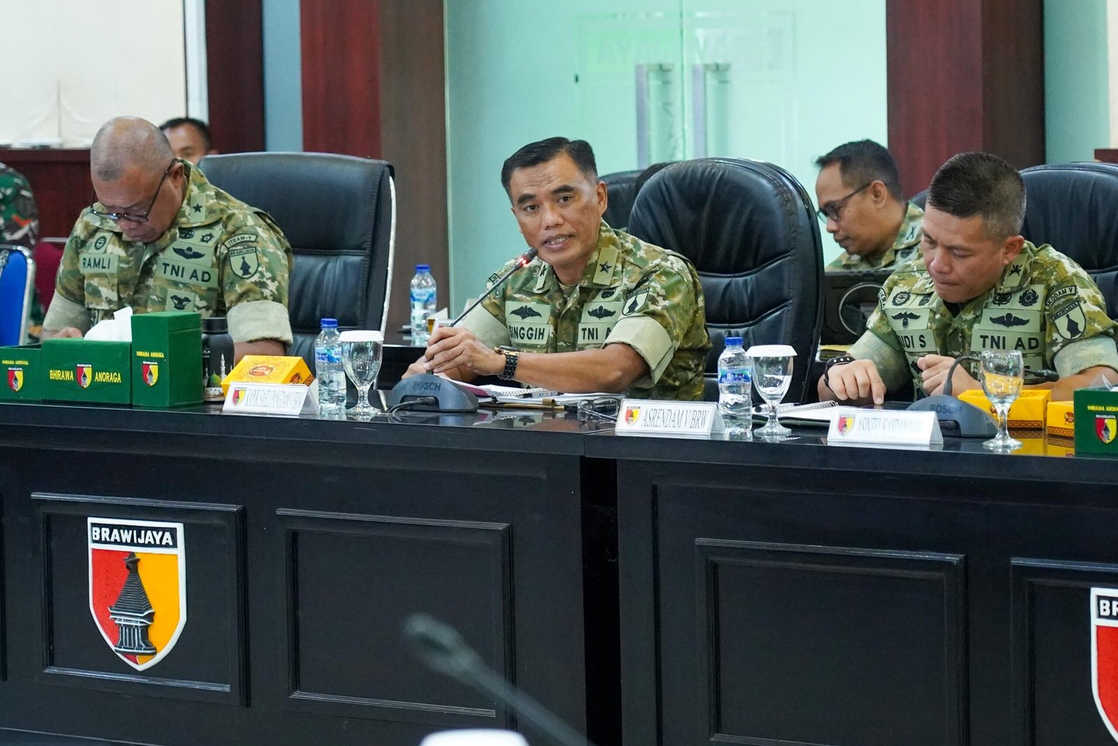SURABAYA, Suatakata.id — Di Ruang Bina Yudha, pada Jumat pagi yang terasa lebih sibuk dari biasanya, Pangdam V Brawijaya Mayjen TNI Rudy Saladin, M.A. duduk di depan para Danrem, Dandim, dan pejabat utama. Suaranya tenang, namun tekanannya jelas: pembangunan KDKMP harus dipercepat karena masa depan ekonomi desa di Jawa Timur bergantung pada kerja keras hari ini.